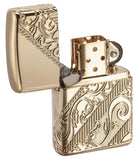 Elegance abounds with the Golden Scroll lighter, the 2018 Collectible of the Year. Zippo’s innovative engineering capabilities bring new vitality to the timeless design. 360 degree MultiCut engraving allows floral motifs and intricate banding to diagonally wrap the entire Armor Gold-Plated lighter. A coordinating insert and luxury box complete the look. Limited to 12,000 pieces worldwide, each lighter is consecutively numbered and authenticated with an exclusive bottom stamp.