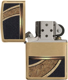 • Make a statement with this brushed brass windproof lighter. This lighter features a gold and black circle design with a part of the brushed brass surface to be engraved on.