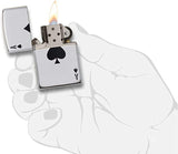 • This High Polish Chrome windproof lighter has the ace of spades color imaged on it. Comes packaged in a gift box. For optimal performance, fill with Zippo lighter fuel.