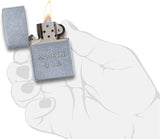 • This simple and sophisticated Street Chrome™ lighter displays the pride that Zippo takes in making its lighters in the USA. This windproof lighter is stamped from the opposite side of the face, resulting in an enduring embossed look. Comes packaged in an environmentally friendly gift box. For optimal performance, use with Zippo premium lighter fluid.