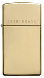 Zippo Slim High Polish Brass with Solid Brass Engraved 1654