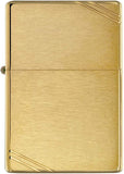 There's nothing old about this vintage model. Features rounded corners and edges replacing the 1935 square case. This Brushed Brass lighter features decorative slashes at the corners of this lighter. Comes packaged in a gift box. For optimal performance, fill with Zippo lighter fuel.