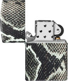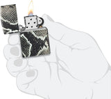 Slithering its way into your collection will be this new Snake Skin design! This unique design presents a snakeskin pattern that completely envelopes the surface of the lighter using the 540 color process. This precision artwork creates a beautiful arrangement, perfect for displaying at all angles. Comes packaged in a gift box. For optimal performance fill with Zippo lighter fuel.