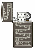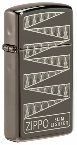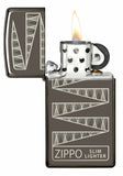 Zippo launched a major innovation in 1956. Known as a Zippo Slim lighter, it offered the same windproof performance as the classic lighter shape, but with a narrower silhouette. Zippo celebrated the 65th anniversary of the Slim lighter with a special collectible. Featuring laser engraving and laser fancy fill on a Black Ice® finish, the angular pop-art design was inspired by the original packaging that Slim lighters came in. Each lighter is consecutively numbered and has an exclusive bottom stamp which designated the lighter as a Zippo collectible piece. Comes packaged in a gift box. For optimal performance fill with Zippo lighter fuel.