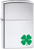 • This High Polish Chrome windproof lighter has a four leaf clover color imaged on this lighter. Comes packaged in a gift box. For optimal performance, fill with Zippo lighter fuel.