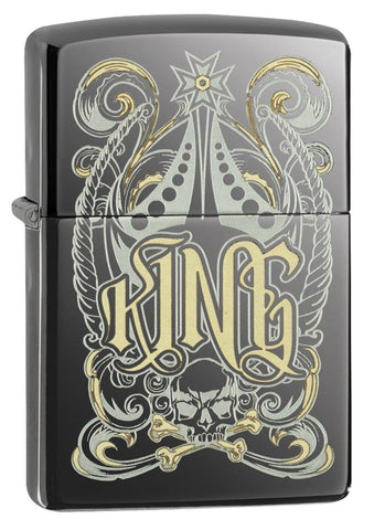 Zippo King with Skull and Crossbones Black Ice 28798