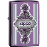 - This Zippo-themed lighter embraces the color purple. An Abyss base model, the intricate design incorporates the iconic Zippo name among purple and gray through expert color imaging.