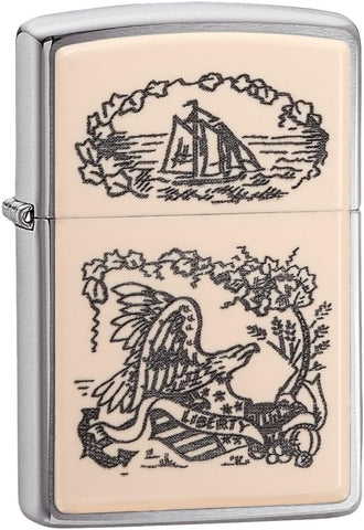 Zippo Scrimshaw Liberty Eagle Emblem Brushed Chrome 29517