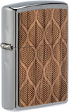 Zippo, in partnership with WOODCHUCK, USA, and their Buy One. Plant One.® program, will plant one tree for every lighter sold. These lighters are created using laser-cut emblem designs, made from 100% real wood, that will help restore and protect the forests of the world. Consumers can use the special code in each box to learn where their trees are planted. This Brushed Chrome lighter features a two-sided walnut emblem, with leaves on the front. Each emblem may feature variations of streaks of blond wood intermixed with deeper tones making each lighter unique. Comes packaged in a gift box. For optimal performance, fill with Zippo lighter fuel.