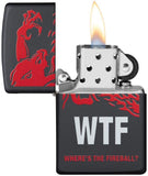 WTF?! Zippo brings Fireball's devilish dragon and spicy brand of humor to this Black Matte lighter. The design uses color imaging to show off the iconic Fireball dragon spewing flames. Comes packaged in a gift box. For optimal performance, fill with Zippo lighter fluid.