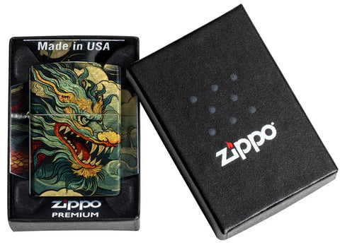 A brilliant, flowing dragon soars around every surface of this classic Tumbled Brass lighter in a stunning 540 Fusion design, which incorporates the shimmering brass tones of the lighter case for added intrigue. Comes packaged in a gift box. For optimal performance fill with Zippo lighter fuel.