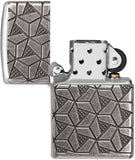 Zippo Geometric Design MultiCut Deep Carved Antique Silver Armor 49883