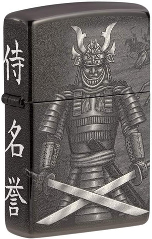 With this Samurai's steady gaze and proud stance, you know its battle has already been won. Watch as combat unfolds across this High Polish Black lighter. This battle scene seamlessly circumvents the entirety of the lighter using the photo image 360 process. Comes packaged in a gift box. For optimum performance, fill with Zippo lighter fuel.