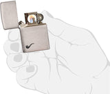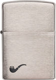 • This Brushed Chrome pipe lighter was designed for the special needs of pipe smokers. The insert makes this lighter unique as the design encases the flame in metal, allowing it to be drawn directly into the pipe without bending over the side and damaging the bowl. The result: perfectly lit tobacco, with no damage to the pipe. Comes packaged in a gift box. For optimal performance, fill with Zippo lighter fuel.